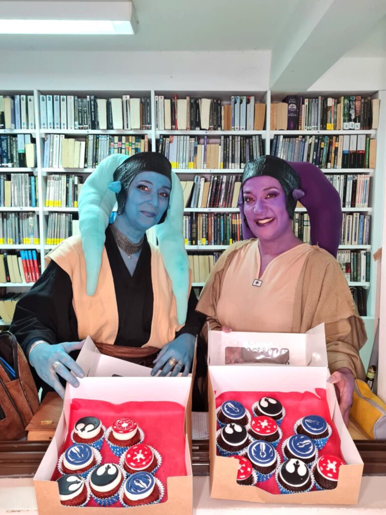 – Des animations participatives : duels de thé, stand Sci-Fi, ateliers de création (cartes au trésor, marque-pages…), démonstration de reliure