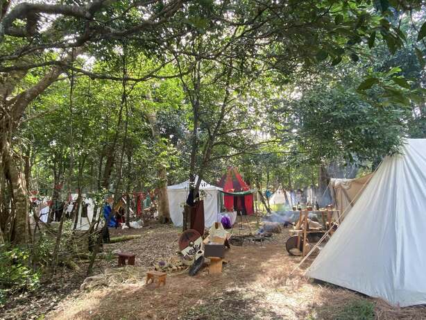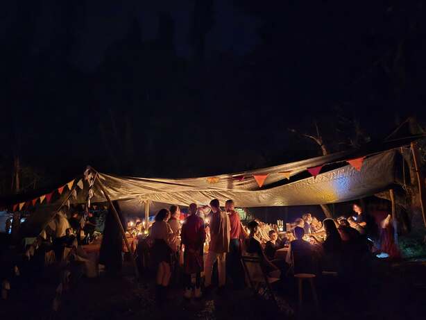 Savoir-faire et partage : Des ateliers de plantes médicinales aux jeux de taverne, en passant par le concours de vins arrangés et les moments suspendus sous la Tente Rouge ou la Tente Blanche, la vie de camp a vibré au rythme des échanges.